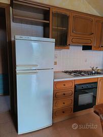 Vendo cucina in legno massello cm. 195 completa di piano cottura e forno marca Ariston e lavello in acciaio con miscelatore. In più è presente una doppia mensola sopra la zona frigorifero. E' corredata da tavolo in legno massello dimensioni cm. 130x80 allungabile a cm. 170 con quattro sedie abbinate e un frigorifero/congelatore marca Bosh. Già smontata.