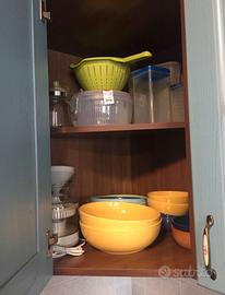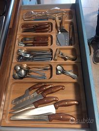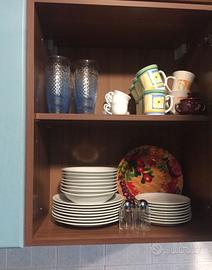 Cucina componibile completa – ottime condizioni Vendo cucina componibile in legno di rovere con ante azzurre e cornici in legno scuro, dallo stile classico e molto curato. Venduta per rinnovo arredamento. Dimensioni: 320 cm sul lato lungo + 120 cm circa sul lato ad angolo. La cucina comprende: Mobile completo con ante e cassetti Piano cottura a gas 5 fuochi da 75 cm Forno elettrico incassato Cappa d'aspirazione con mantellina in legno Frigorifero da 60 cm con congelatore (doppia porta) Forno a microonde Samsung Doppio lavandino ad angolo in acciaio inox 2 pensili scolapiatti Cassetto portaposate in legno Tavolo in legno con struttura in metallo + 4 sedie coordinate Disponibile dal 1° luglio. Ritiro a carico dell'acquirente. Visionabile su appuntamento. Per informazioni, foto aggiuntive o dettagli contattatemi in privato.