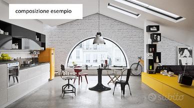 Cucina componibile con frontali sp 22 mm con gola senza maniglie, cassa nei colori di serie con possibilita' di personalizzazione e vasta scelta di frontali fra' laminati effetto legno, lisci e cemento, laccato opaco e pvc lucido, completa di top in laminato sp. 4 cm, prezzo su composizione come schema allegato di 3,60, completa di 4 elettrodomestici in classe A/A+ Hotpoint con di cappa integrata, lavello e miscelatore CM inox, varie possibilita' di progettazione a misura e personalizzazioni.