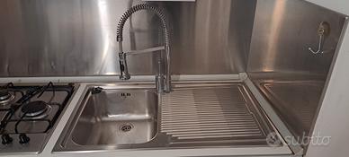 Vendo cucina componibile 3,30 mt con penisola, completa di piano cottura, forno, cappa e lavandino con rubinetto. Per altre informazioni contattatemi.
