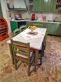 Cucina in ottime condizioni, completa di forno, piano cottura, depuratore per acqua potabile, penisola a quattro ante, mensole varie, tavolo con 6 sedie. Prezzo trattabile