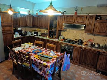 Cucina in legno completa di elettrodomestici,frigo escluso . Ingombro 4,80 x 2,10 ma frazionabile perché il top è in 3 pezzi.