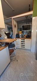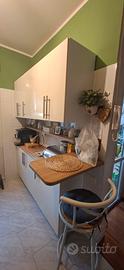 Vendo cucina componibile bianca. La parete con elettrodomestici è di marca Febal. Basi profonde 60cm (lavello e forno) e pensili vasistas profondità 30cm (scolapiatti e contenitori). La parte opposta con piano in legno è Ikea, profondità 38cm sia le basi che i pensili. Top in legno. Terza parete composta da basi 60cm (cassettiera e cestelli estraibili) e portabottiglie profondità 30cm. Top in legno adattatore. La cucina si può ricomporre in maniera diversa rifacendo i top. Elettrodomestici ESCLUSI. Solo compreso lavello Franke a due vasche in acciaio e rubinetto. SOLO RITIRO A CURA DELL'ACQUIRENTE