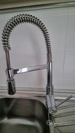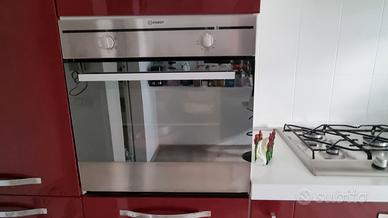 Completa di scolapiatti ed elettrodomestici Indesit perfettamente funzionanti e ben conservati (piano cottura a 5 fuochi, forno ventilato, frigorifero/freezer) lavello in acciaio con vasca e scolapiatti laterale, rubinetto a molla, cappa in acciaioTurboair.