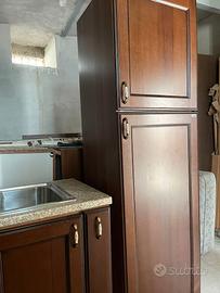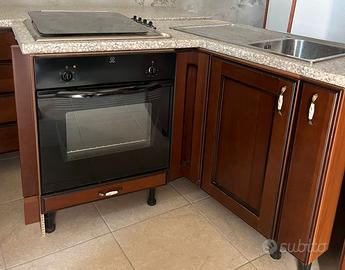 Vendo cucina in legno noce, maniglie porcellana ,marca "Gatto" ad angolo in ottimo stato,, componibile come da foto, compresa di frigo. piano cottura, forno, cappa aspirafumi, lavabo Misure come da foto