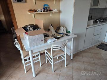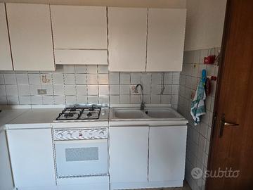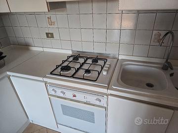 Cucina componibile marca GATTO con tavolo e 4 sedie, completa di forno, lavandino 2 vasche smaltate bianco e piano cottura 4 fuochi gas metano o GPL. Il frigorifero non è disponibile perché rottamato ma il mobile contenitore è presente. La cucina è attualmente smontata e su trova a Ceriale (Savona) pronta per essere caricata e trasportata. Buone condizioni come da foto. Prezzo trattabile.