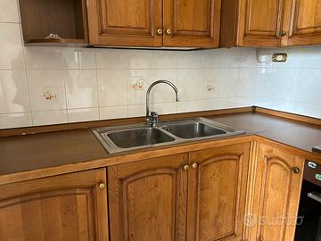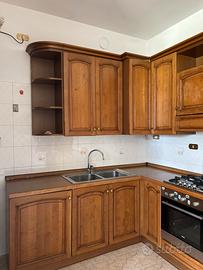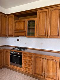 Cucina in legno con lavabo, forno elettrico e fornello inclusi.