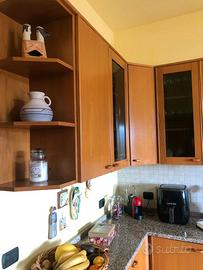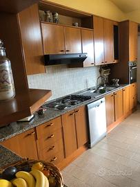Vendesi cucina componibile in legno lunghezza m 6,30 (o m 5,70) con top in marmo e pensili alti 96 cm, completa di colonna forno e lavello in acciaio. Prezzo richiesto euro 2500. Lavastoviglie non compresa nel prezzo.