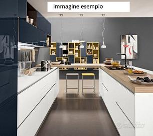 Cucina componibile con frontali sp 18 mm con gola senza maniglie, cassa nei colori di serie con possibilita' di personalizzazione, colori frontali laccato opaco e monolaccato lucido, in 13 colori, completa di top in laminato sp. 4 cm, prezzo su composizione come schema allegato di 3,60, completa di 4 elettrodomestici in classe A/A+ Electrolux con di cappa integrata, lavello e miscelatore CM inox, varie possibilita' di progettazione a misura e personalizzazioni.