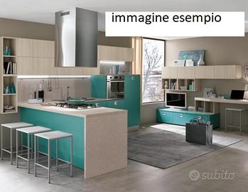 cucina componibile con frontali sp 18 mm con gola senza maniglie, cassa nei colori di serie con possibilita' di personalizzazione, colori frontali laminato opaco in vari colori, lisci, effetti legno e cemento, completa di top in laminato sp. 4 cm, prezzo su composizione come schema allegato di 3,60, completa di 4 elettrodomestici in classe A/A+ Electrolux con di cappa integrata, lavello e miscelatore CM inox, varie possibilita' di progettazione a misura e personalizzazioni.