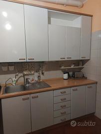 cucina componibile di duemetri e novanta più vetrina e sottovetrina di 90 centimetri. la cucina comprende piano cottura lavandino e lavastoviglie.