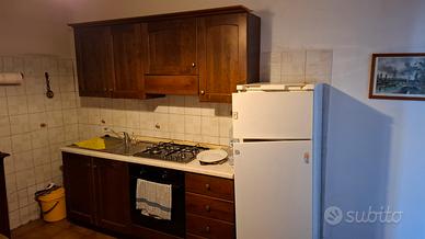 Vendesi cucina componibile larghezza 2,40 m. completa di elettrodomestici: - piano cottura 4 fuochi (ugelli metano) - lavabo 1 vasca con miscelatore - forno elettrico - cappa aspirazione - frigorifero da incasso composta con - cassettiera (4 cassetti) - 4 pensili - battiscopa - cornicie decorativa - colonna frigo NON presente in foto perché un pó danneggiata)