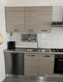 Vendo cucina Mondo convenienza come in foto: 3 pensili, 1 cappa aspirante, 1 cassettiera 3 cassetti, Cucina a gas con forno in buone condizioni, 3 mobiletti con ante, la lavastoviglie è esclusa, verrà montato al suo posto l'anta presente all'acquisto.