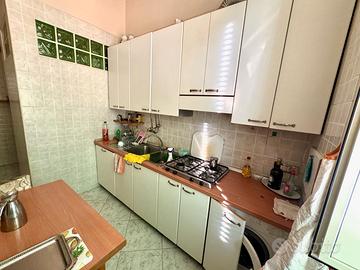 cucina componibile linearedi stampo moderno/funzionale, con finitura bianca per le ante e dettagli in essenza legno per la struttura e il piano di lavoro. * Include una colonna forno separata, piano cottura a gas a 4 fuochi, lavello a doppia vasca in acciaio inox e cappa aspirante integrata nei pensili. * forno da incasso, vano lavatrice (incassata sotto il top) e un frigorifero a colonna * mobile solido e ben tenuto, presenta i normali segni d'uso di una cucina vissuta. visto e piaciuto con smontaggio a carico dell'acquirente"