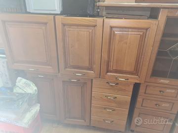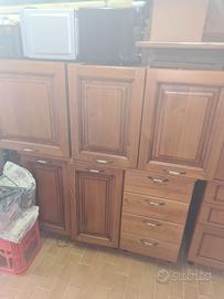 Vendo cucina in legno marrone chiaro. Smontata I moduli sono : 1 Mobile frigo alt.210 x larg.60 x prof.60 2 mobilel cassetti alt 60 x larg.45 x prof.60 1 mobile con 2 ante alto 60 x larg.90 x prof.60 Ripiano lung. 180 x prof.65 Battistrada alto 45 x lung.180 2 pensili vetrina alt.60x largo.45 x prof 35 1 pensile 2 ante alto 60 x largo 90 x prof 35 1 mobile scolapiatti alt.60x largo 90 x prof 35 Più n 4 mobili colore simili varie misure. Prezzo 380euro trattabile. Posso trasportare prezzo a parte