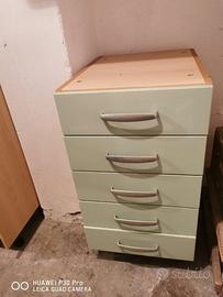 - cassettiera dim. 45x58 cm con 5 cassetti (h 14 cm/cad) e struttura in metallo;