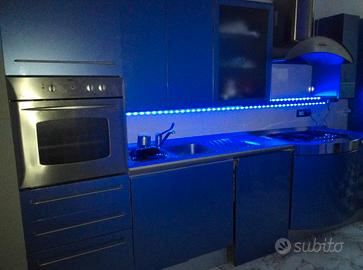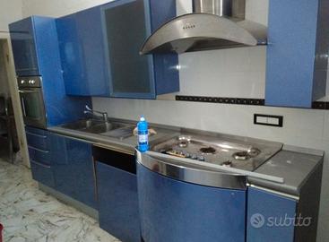 bellissima cucina componibile marchio Snaidero desing Pininfarina modello Ola cioè onda blu proprio per le sue curve ed il suo colore come il mare . La cucina è tenuta bene ed dotata di elettrodomestici come forno Rex cappa piano cottura lavandino compreso di rubinetteria tutto in acciaio . Oltre ai tanti stipiti ha anche un vano per la.lavastoviglie che attualmente è in uso come porta bombola , è composta inoltre da una cassettiera sotto al forno e di un porta pentole sotto al piano cottura . c è anche un vano frigo che ,ho trasformato in uno stipite mettendo dentro dei pensili che volendo si possono togliere e riportare nuovamente a vano frigo incassato. vendo per ristrutturazione e cambio arredamento ,ideale per seconde case o case a mare . davvero molto bella .