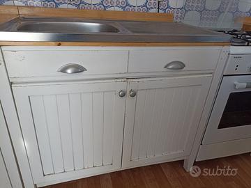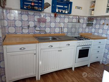 Cucina componibile composta da cassettiera ( 60 x 60) + lavello con gocciolatoio (60 x 100) + cucina a gas (50 x52)+ base ( 60 x60) + 5 pensili + frigo Beko (142 x 53)