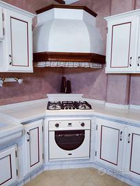 Svendo cucina laccata avorio con rivestimento in piastrelle e piano in marmo bianco sp 4, lavello vasca unica da 90 cm sp 20, elettrodomestici forno e piano cottura Ilve, cappa aspirante più miscelatore.