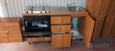 cucina componibile completa di basi, pensili , top con fornelli e lavandino con rubinetto. cappa, pensile scolapiatti. La cucina è usata, quindi ha normali segni del tempo e del normale utilizzo. tuttavia è in buono stato, funzionale e semplice. così composta: 1 top da 2,50 metri, con piano cottura a 4 fuochi a sinistra, e lavandino 1 vasca con rubinetto a destra. 3 basi, una col forno, forse usato poche volte, una con 3 cassetti e l altra sotto lavello. 2 pensili grandi da 90cm di larghezza . classiche con mensola. 2 basi piccoli da 45 cm . uno con scolapiatti, e l altro con mensola 1pensilino con cappa. La cucina è già smontata e si trova in un garage. semplice da caricare.