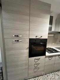 Lunghezza 3 metri Altezza 2,60 m Completa di frigorifero, forno elettrico, piano cottura con 4 fuochi a gas, lavello in acciaio