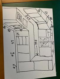 cucina con ante in rovere massello piano in laminato frigo con celletta frizer lavello porcellana terra di francia 4 fuochi + forno