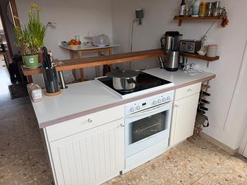 Incluso: forno, piastra 4 fornelli, frigo, lavastoviglie, lavabo, boiler per lavabo;