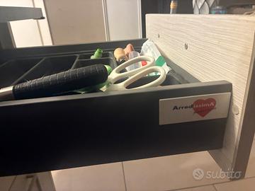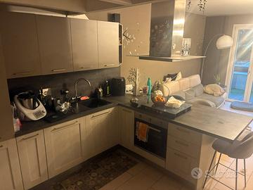 Cucina arredissima tenuta benissimo, lunga 3,90 m h 2,18 m con penisola con forno e vano con 5 fuochi indesit, la penisola include 4 sedie, oltre a lavastoviglia e frigo incassato.