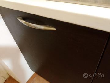Vendesi cucina usata color Wengé, lunga 320 cm e composta da 6 moduli: mobile sotto lavello, mobile su misura con due antine per lavatrice, antina per lavastoviglie, due cestoni estraibili, colonna forno alta 150 cm. Top bianco. Segni del tempo e dettaglio della colonna forno in foto. In omaggio lavello, lavatrice Beko, lavastoviglie Whirpool, cappa Whirpool di Ikea e forno Candy. Smontaggio e trasporto a carico dell'acquirente, da effettuarsi entro la mattina dell'11 marzo 2026. Sesto piano con ascensore, no ZTL.