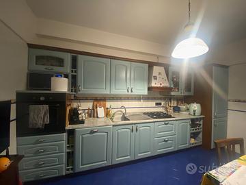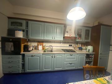 4,27 mt componibile come si preferisce. Vendesi cucina con frigo, lavastoviglie e forno, 4 pensili di cui 1 con vetrina, sotto 1 mobile aperto, 1 chiuso, 2 cassettoni e sotto il forno 4 cassetti