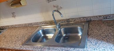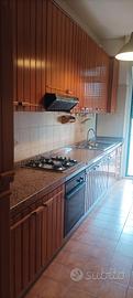 Cucina lineare ben conservata acquistata da mobiliere no ikea o grandi magazzini con elettrodomestici (frigo+freezer, forno cappa piano cottura 4 fuochi) lavandino due vasche in acciaio piano di lavoro in granito rosa sardo. Misure:lunghezza 4m30 lprofonda 60 altezza 2 m 45 ritiro in zona viale umbria
