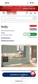 Vendesi cucina Selly Mondo convenienza nuova con elettrodomestici e lavello, per cambio progetto. Lvello monovasca da 70cm nero in fragranite. Elettrodomestici inclusi: Piano cottura induzione Forno Lavastoviglie Il tutto è ancora nuovo e imballato, prezzo trattabile. Per maggiori informazioni sul modello di elettrodomestici, dimensioni o altro non esitate a contattarmi. (Ho disponibile anche mobile soggiorno)