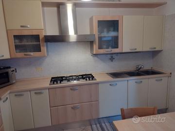 CUCINA USATA IN BUONE CONDIZIONI DI DIMENSIONI 3.60 M X 2.10 CON ELLETRODOMESTICI, FORNO ARISTON, CAPPA FABER, LAVELLO FRANKE, PIANO COTTURA DA 90 CM CON 6 FUOCHI ARISTON FRIGO BOSCH 70 CM TAVOLO IN LEGNO 125 X 80 CON 4 SEDIE.