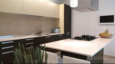 cucina con isola in ottime condizioni compresi elettrodomestici piano cottura (gas), forno, frigo con congelatore top in quarzo , doppio lavabo cassetti con chiusura accompagnata, cestoni molto capienti sotto l'isola quattro sgabelli bianchi similpelle inclusi. vendo per rinnovo arredamento misure cucina 380 x 250 isola 90 x 220 la cucina è attualmente montata smontaggio ed imballaggio a carico dell'acquirente