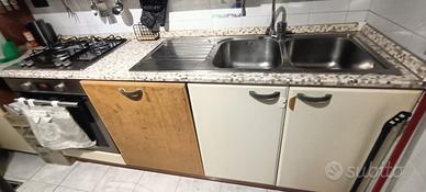 Vendo cucina con lavello a doppia vasca, piano cottura Hotpoint a 4 fornelli, forno Hotpoint e lavastoviglie Whirlpool difetti visibili in foto. L300 Disponibile fino a fine mese causa trasloco Contattarmi per maggiori informazioni Prezzo trattabile