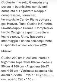 Cucina in massello Giomo in arte povera in ottime condizioni completa di elettrodomestici (frigorifero,forno,lavastoviglie,piano cottura a gas).