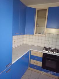 cucina un legno blu angolare completa di frigo con freezer due motori lavatrice tavolo con 4sedie. Posso inviare video.