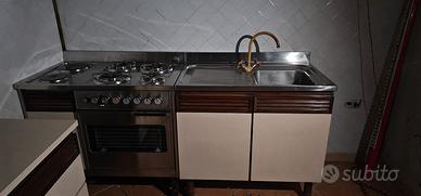 Vendo cucina completa di fuochi,forno, lavello e vano porta bombola. Misure lato fuochi 180x57, misure lato cassetti 136x57