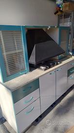Cucina in buone condizioni, piano in laminato, gas e cappa funzionanti. Lunghezza 180 cm. Lavabo non compreso.
