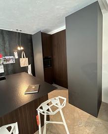 Meson’s Mod. M2 Goccia La presa di apertura di Goccia è tra i segni maggiormente caratterizzanti lo stile Meson’s. L’effetto di leggerezza e sospensione che crea tra basi e top, è alla base della capacità di questo progetto di attraversare il tempo senza perdere nulla in termini di equilibrio estetico. Un accorto restyling aggiunge ora alla gola un carattere ancora più deciso e pulito. Caratteristica alla quale si aggiungono una presa più comoda e una pulibilità ulteriormente semplificata. Cucina con isola e colonne Materiale: Ante: Noce cotto - Top: Black Dekton - Colonne: Struttura: Grigio Fenix - Ante: noce cotto Elettrodomestici inclusi: - Lavastoviglie Aeg - Frigo Aeg - Piano cottura ad induzione Aeg - Lavello Franke MRG 110-52 - Rubinetto Franke Urban Il prezzo include gli elettrodomestici sopra elencati Dimensioni: Isola L 180 x P 180 x H 89.8 cm / Colonna cadauno L 75 x P 60 x H 242 cm Prezzo di listino € 29200 Siamo rivenditori Mesons, se desiderate un preventivo inviateci la planimetria, le foto della stanza della cucina e anche l'indirizzo di consegna, saremo lieti di inviarVi un preventivo. Grazie al supporto dei nostri architetti possiamo progettare la tua cucina. Si effettua il servizio di montaggio e consegna anche all'estero.