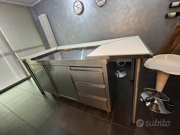 Cappa con motore di aspirazione da riparare, isola in acciaio Inox, n 5 sgabelli.