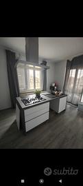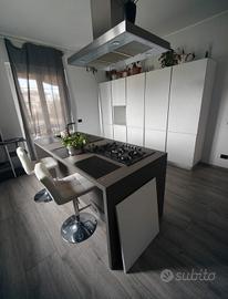 cucina con isola stile moderno minimal,in ottime condizioni come da foto, l'annuncio si riferisce alla cucina con 5 fuochi, lavello, forno, cappa NO frigo NO lavastoviglie , acquistata presso asta del mobile, perfetta in tutto.