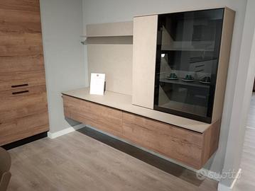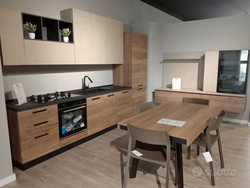 Per rinnovo mostra offerta cucina anta 22mm. da cm. 345 con doppia altezza , completa di lavello a vasca da 90 cm. e rubinetto, piano cottura gas in vetro Beko , forno multifunzione Beko, lavastoviglie incasso 14 coperti sliding Beko , frigo da 75 cm. , cappa incassata innova-smart .