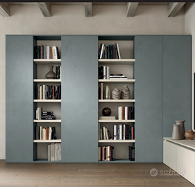 CUCINA CON PENISOLA CON COLONNE LIVING+LIBRERIA