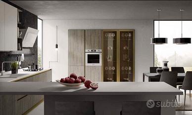 CUCINA CON PENISOLA CON COLONNE+VETRINE SU MISURA