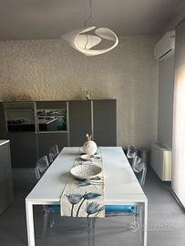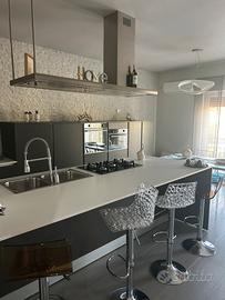 Cucina con penisola Doimo , piano cottura hotpoint ariston, lavostoviglie hotpointariston , forno e microonde hotpoint ariston,