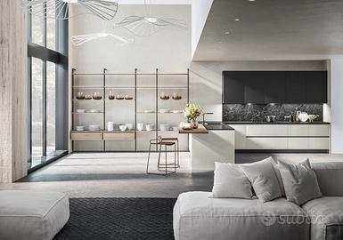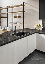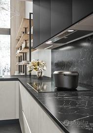 Proponiamo una cucina componibile su misura, con penisola e doppia colonna, per un impatto estetico elegante e funzionale. La struttura si sviluppa su una lunghezza complessiva di 728 cm, come da progetto grafico allegato. Composizione tecnica: • 1 colonna frigorifero – L. 60 cm, H. 204 cm • 1 colonna forno – L. 60 cm, H. 204 cm • 2 basi da 60 cm – equipaggiate con cestoni estraibili • 1 base da 120 cm – predisposta per piano cottura, con cestoni interni • 1 base da 125 cm – angolare con anta battente • 1 base da 120 cm – dedicata al lavello • 2 basi da 60 cm – con ante tradizionali • 5 pensili da 60 cm – dotati di ante e chiusura ammortizzata • Tavolo Snack con spessore 4 cm – perfetto per colazioni e pause conviviali Finiture disponibili in promozione (fino a esaurimento scorte): • Quarzo • Gres porcellanato • Superficie Fenix • HPL (High Pressure Laminate) • Cosmolite Caratteristiche tecniche: • Maniglia a gola per un design pulito e moderno • Guide e cerniere ammortizzate Salice • Tutti gli elettrodomestici sono esclusi, ma puoi sceglierli separatamente senza obbligo d’acquisto • Mobili realizzati con materiali di alta qualità, prodotti direttamente da noi. Vantaggi per il cliente: • Personalizzazione totale: la composizione può essere modificata e riprogettata in base alle tue esigenze spaziali e funzionali • Sala mostra riservata ai clienti – un ambiente dedicato per toccare con mano i materiali • Visita in fabbrica su richiesta: scopri dove nasce la tua cucina, seguendo ogni fase della produzione • Consegna gratuita in tutta Italia presso il deposito più vicino alla tua zona • Montaggio disponibile – previa verifica della copertura territoriale • Assistenza diretta con il produttore per sostituzioni o interventi su elementi danneggiati o difettosi Garanzia ufficiale del produttore inclusa sul mobilio.