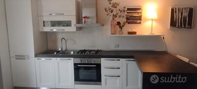 cucina ottime condizioni, bianca, ante in legno e top Maxi da 8 cm