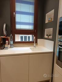 Cucina Velvet rovere bianco con piano e lavello in Corian. Completa di elettrodomestici (esclusa lavastoviglie non più funzionante)