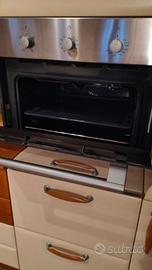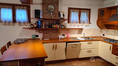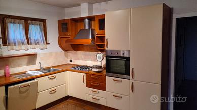 Cucina Scavolini come in foto compreso: - frigo con freezer; - lavastoviglie Ariston - forno Ignis - 4 sgabelli in ciliegio marca Calligaris per la penisola - piano cottura/fuochi con ugelli gpl. Ingombro totale con misure della cucina con rispettiva penisola visibili in foto. Smontaggio e ritiro a carico dell'acquirente.